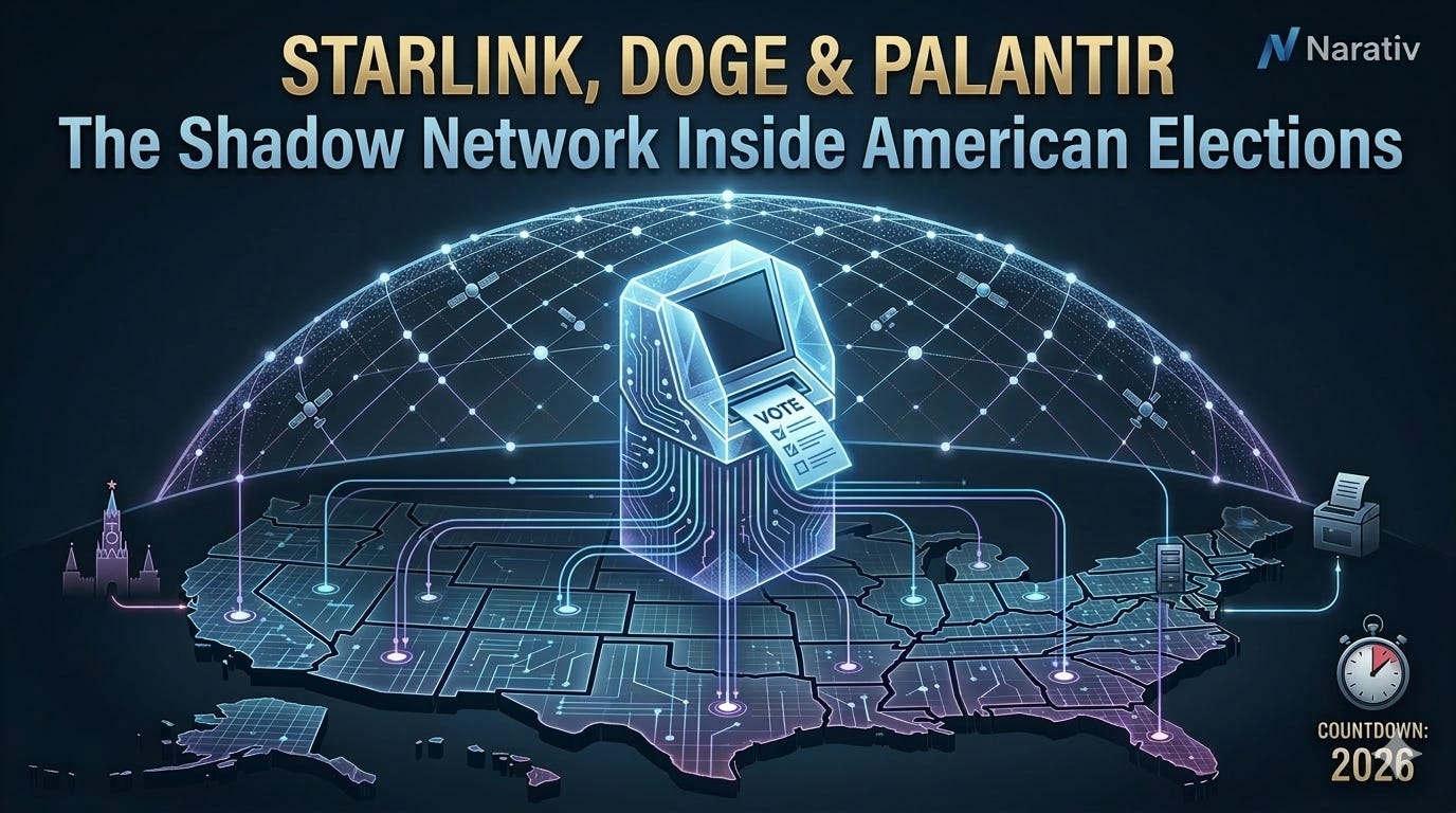 A Narativ investigation has connected the dots in what appears to be an operational network to interfere in the 2026 midterm elections — one that runs from the Kremlin through the highest levels of the U.S. government, through a privatized surveillance infrastructure, and now directly into America’s voter rolls.