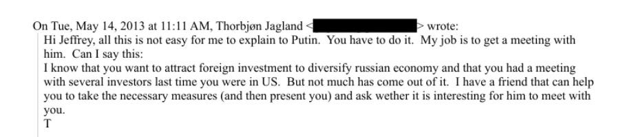 “Hi Jeffrey, all this is not easy for me to explain to Putin. You have to do it. My job is to get a meeting with him.”
