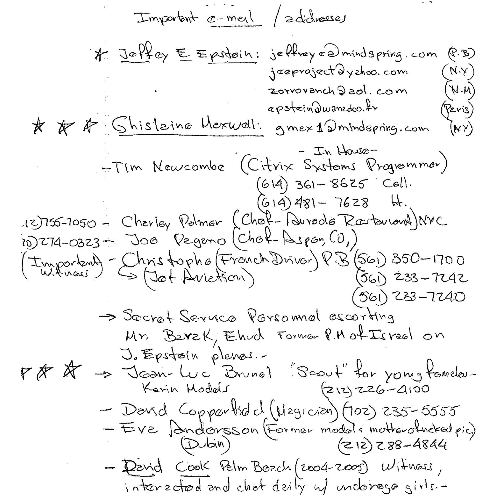A separate memo details Secret Service personnel escorting Israeli Prime Minister Ehud Barak onto Epstein's plane alongside Jean-Luc Brunel, explicitly identified as "scout for young females," David Copperfield, and Eva Anderson, described as "one of Jeffrey Epstein's best recruiters."
