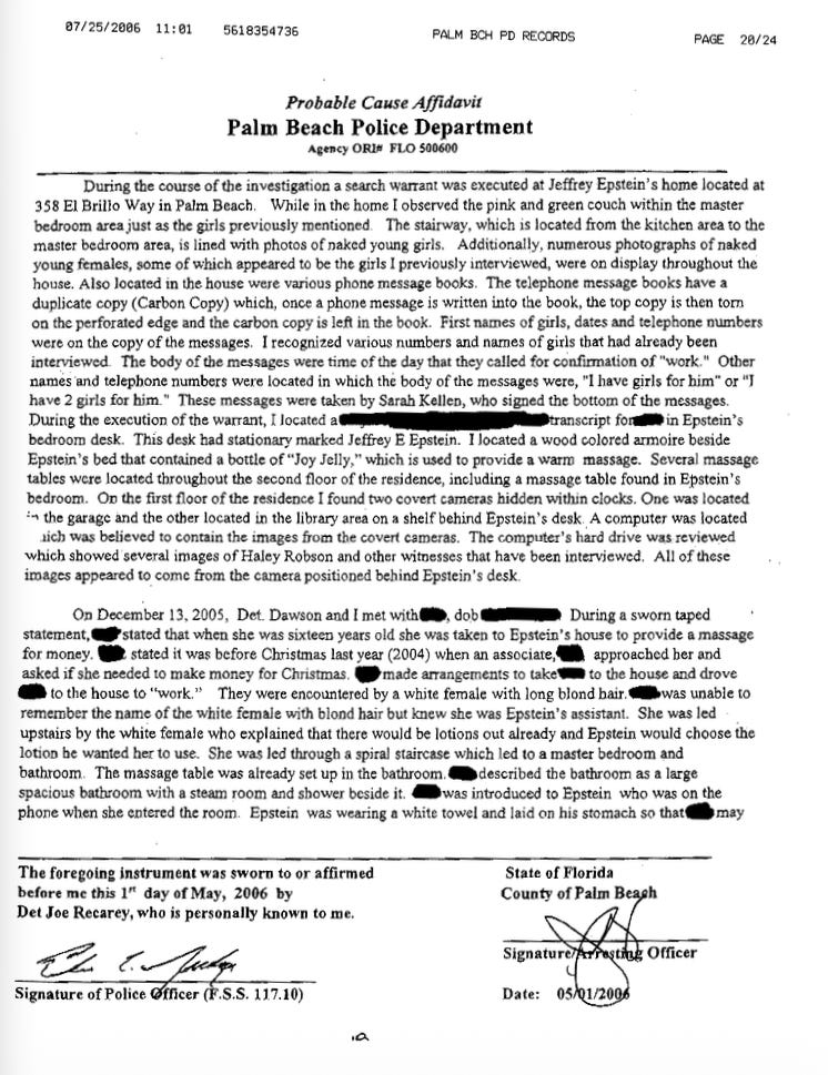 On December 15, 2005, Palm Beach Police Detective Joseph Recarey walked out of Jeffrey Epstein’s mansion carrying evidence that would never be fully investigated. Among the items seized: carbon-copy message books containing the first names of girls, dates, and telephone numbers.
