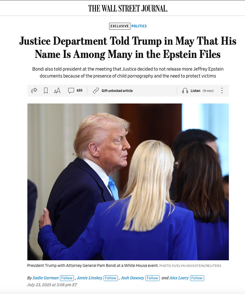 WSJ Bombshell: Trump's Name Appears In Many Epstein Files
